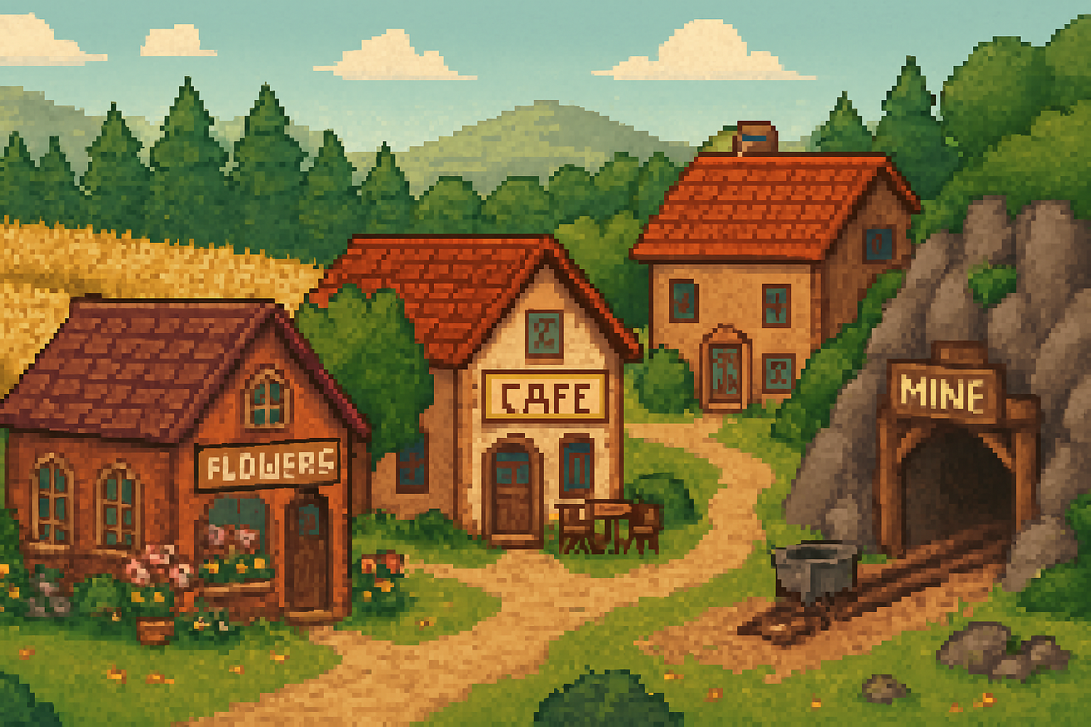 • Create one sprite for every building (Wheat Field, Cafe, Mine, etc.).